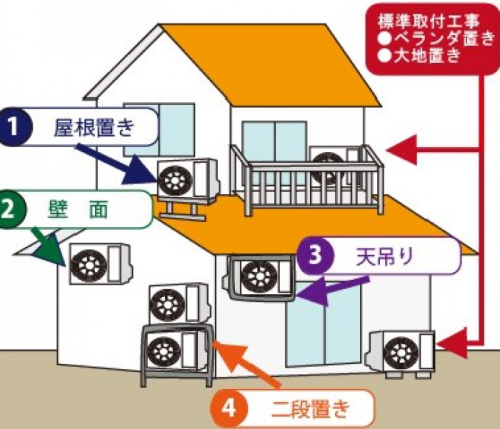 基本工事に含まれる設置例赤い矢印
